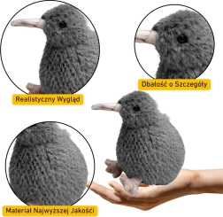 This grey plush kiwi faithfully captures the distinctive look of the exotic bird. The soft, high-quality plush ensures a pleasant touch and comfort while cuddling, while carefully crafted details give the toy an authentic expression. Thanks to its universal design, it’s suitable both for play and as an interior accent.