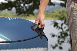 The boat is equipped with special valves for quick air release and safety valves for trouble-free inflation and launching on the water. For maximum comfort, it offers an inflatable floor that ensures comfort during the voyage. It also includes strong paddles holders and a towing eye for easy handling.