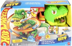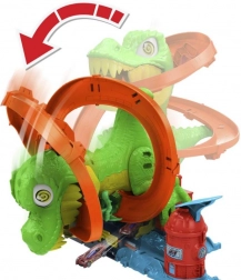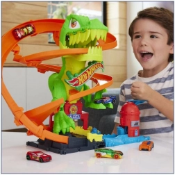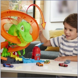 Get ready for a thrilling ride in Hot Wheels City! Launch the included 1:64 die-cast car and speed past the T‑Rex. Each time the car passes, the dinosaur’s eyes rotate until it’s finally defeated. Kids can try different scenarios – from quick refueling to a heroic victory that saves the whole city.