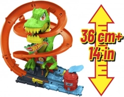 Playset with track and T‑Rex dinosaur, 1 die-cast 1:64 car