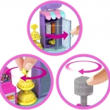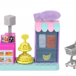 This finely detailed mini supermarket offers kids plenty of play scenarios: from stocking grocery shelves and operating the cash register with payment terminal, to storing goods in the opening fridge and displaying them on the rotating stand. Also included is a shopping cart sized for the mini doll.