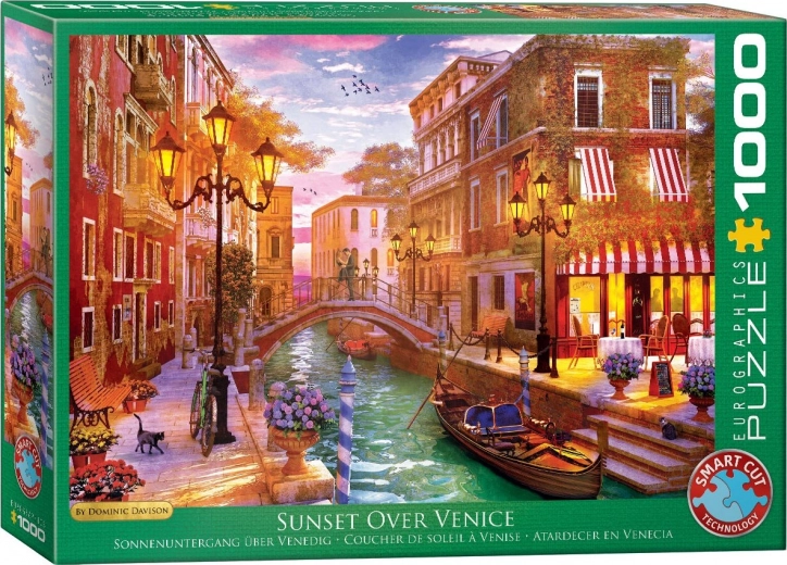 Enjoy both relaxation and challenge with a high-quality EUROGRAPHICS puzzle featuring a sunset over Venice. Thanks to the unusual piece shapes and a die-cut that does not follow a standard grid, assembling offers higher difficulty and long-lasting fun. Once completed, it forms an impressive image measuring approx. 67.63 × 48.89 cm.