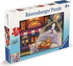 The 'Happy Cat Pizza' puzzle from Ravensburger is an ideal way to keep kids entertained while assembling. The finished puzzle measures approx. 26 x 18 cm and guarantees fun for little fans of animals and tasty foods. High-quality workmanship and sturdy pieces ensure the puzzle is pleasant to assemble and easy for children to handle.