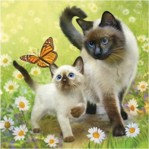 A charming scene of cats with a butterfly teaches children to notice details and colors while assembling.