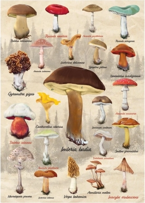 Enjoy a relaxing time with a high-quality Czech puzzle featuring a mushroom motif. Assemble a collage of edible, inedible, and poisonous species from 1000 pieces. Puzzles made from durable cardboard develop patience, focus, and fine motor skills. Precision technology ensures accurate and complete pieces. The finished picture will enliven your home or office.