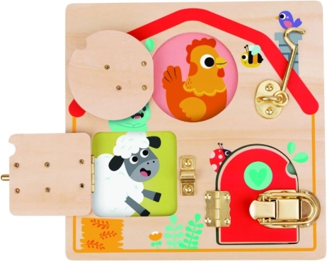 Discover a fun and educational toy for the little ones: a wooden activity board with locks that develops fine motor skills, logical thinking, and curiosity. Three different locking mechanisms keep children engaged while teaching patience and hand coordination.