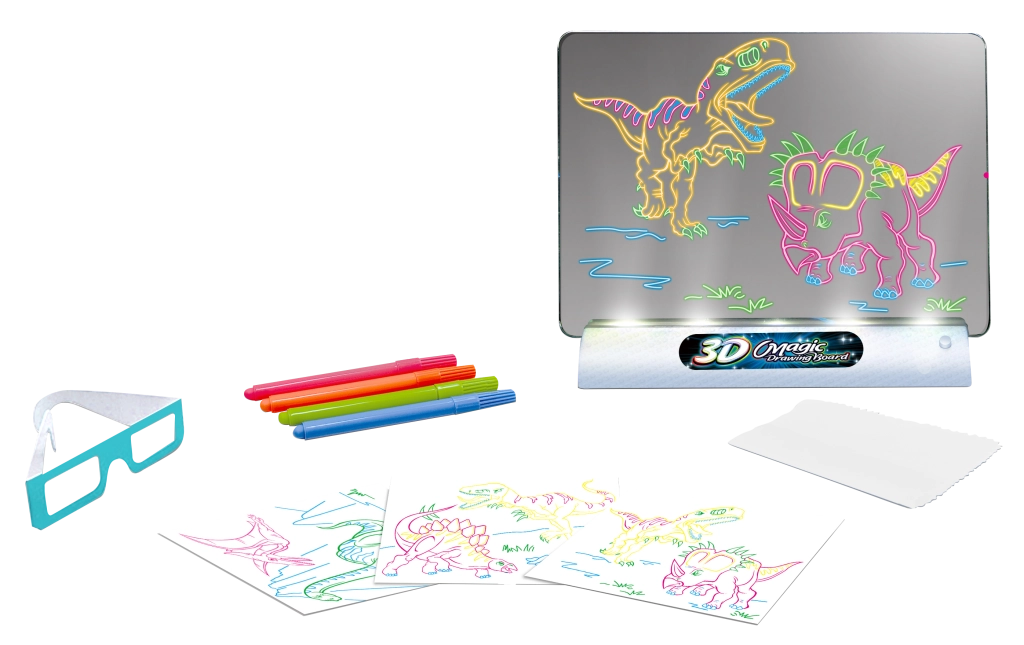 This 3D drawing board allows children to see their drawings in a new dimension. Simply draw a picture on the included board, insert it into the reader, and put on the 3D glasses. The result? A three-dimensional masterpiece that will amaze!