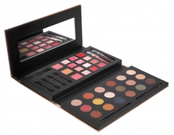The palette includes 18 shades of eyeshadows suitable for both day and night makeup.