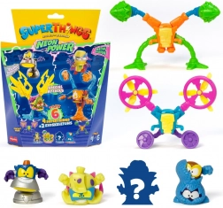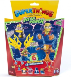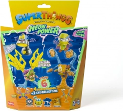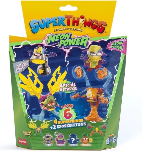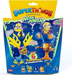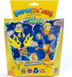 Step into the city of Kaboom and grow your collection with SuperThings: Neon Power! Each pack brings a mix of 4 heroic (or villainous) figures and 2 exoskeletons that add power and style to your battles. The neon design ensures your characters stand out in every action scene.