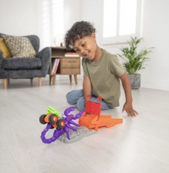 The set includes an orange ramp and a purple scorpion-shaped obstacle, providing great fun and adventure.