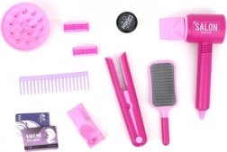 Enjoy fun with your own hair salon and become a hair styling expert! This set includes a simulator of a hairdryer and hair straightener, allowing for styling like a real hairdresser. Additionally, light and sound effects add to the realistic experience.