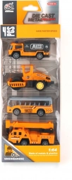 This set of metal and plastic mini vehicles offers kids endless play possibilities. The realistic details of construction and utility machines shine in every race and during the building of an imaginary city. The pull-back mechanism works reliably and is ideal for both short and long tracks on the floor or table.