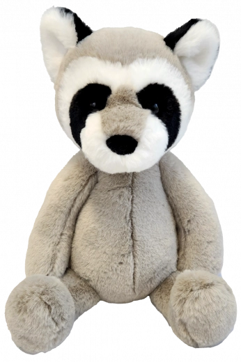 The plush raccoon is made from a soft and pleasant material, perfect for cuddling.