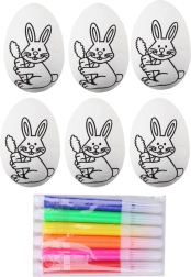 Discover the joy of crafting with this Easter set, featuring 6 polystyrene eggs with a charming bunny and carrot pattern and a set of colorful markers. Thanks to the smooth surface, colors apply well and children can easily create their own unique Easter eggs. Ideal for Easter decorations, school projects, and leisure workshops.