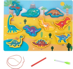 Educational wooden puzzle with a dinosaur theme, that develops creativity in children and their manual skills. Thanks to the magnetic elements, the game is attractive and provides additional challenges.
