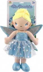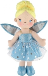 The doll is dressed in a blue dress with glittery wings, giving her a true fairy-tale appearance.