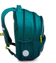 A well-thought-out interior with multiple compartments and pockets ensures perfect organization of school supplies. It includes a holder for keys/school chip, two spacious side pockets, and reflective elements for better visibility at dusk. The reinforced waterproof bottom protects the contents from moisture and extends the backpack's lifespan.