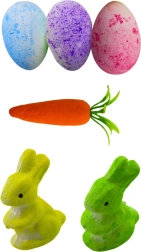 Easter decorations in a basket are perfect for a spring arrangement. This set includes a variety of decorations made from lightweight and durable polystyrene, complementing any interior beautifully. Its pastel colors enhance the joyful holiday spirit, and the meticulous details ensure an elegant look.