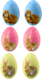 The eggs are available in pastel colors yellow, blue, and pink, which brighten up any decoration.