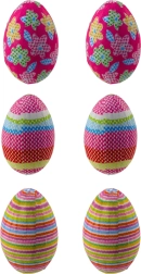 The set includes eggs with dots, stripes, and floral motifs for a vibrant Easter decoration.
