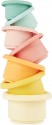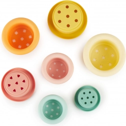 Seven-piece stacking cup set made of 100% silicone. This toy is designed to improve children’s coordination and fine motor skills. Made from durable and safe silicone, these cups are ideal for use both indoors and outdoors. Maintenance is very simple – just wash with water and mild soap.