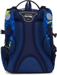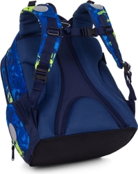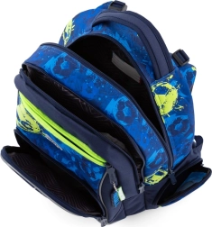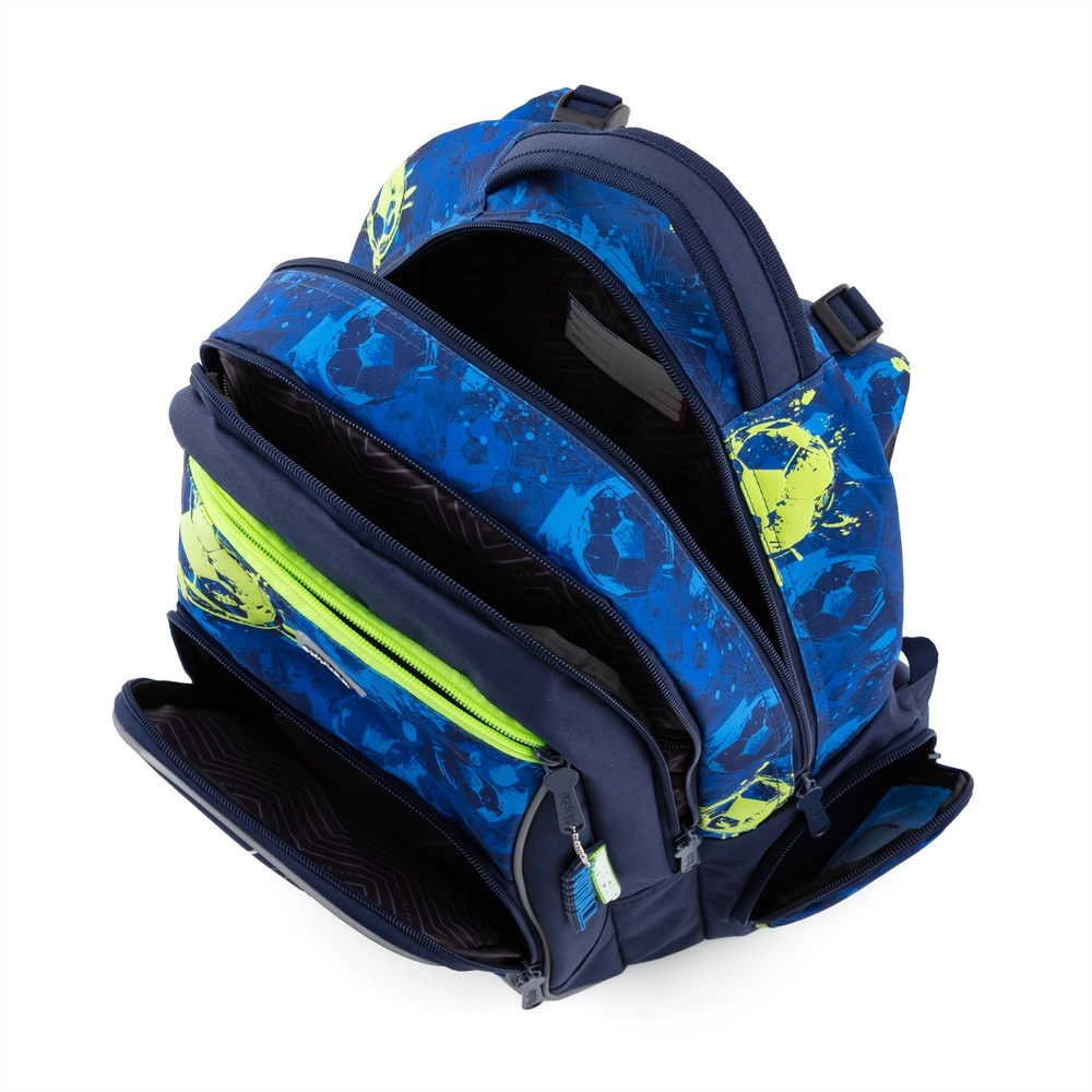 The OXY GO FOOTBALL school backpack combines modern design and functionality. Thanks to its anatomically shaped, breathable back panel and padded, adjustable shoulder straps, it is comfortable to carry even when fully loaded. The sturdy, waterproof base protects the contents from dirt and moisture, and reflective elements increase safety on the way to school.