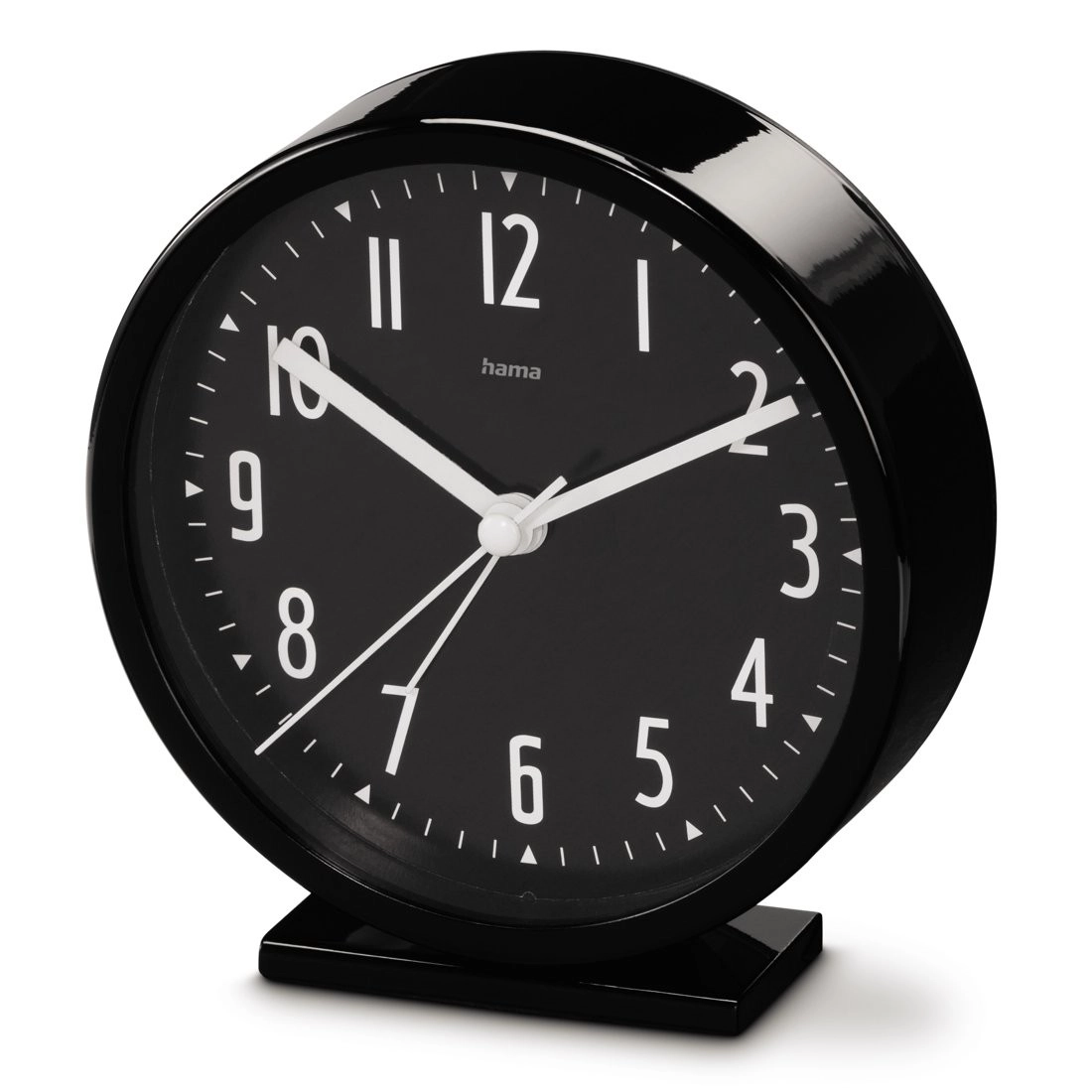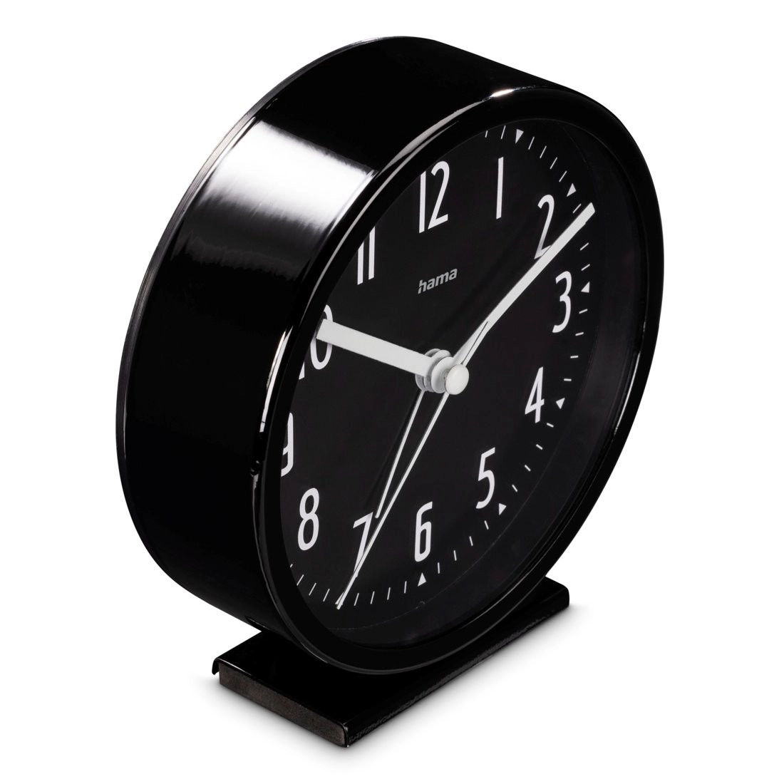 Wake up on time and peacefully with the elegant Hama Skye alarm clock. It offers a quiet, smooth movement, a clear analog dial with large white numerals, and a compact 11.3 cm size. Thanks to its easy alarm setting and glossy black design, it fits any bedroom.