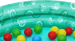 The BESTWAY inflatable pool is a great choice for children from 2 years old. Thanks to its compact size, it fits in an apartment, on a terrace, or in a garden. The durable, pre-tested vinyl ensures resilience and long service life, while the transparent walls with a cheerful fruit pattern invite play and support children’s sensory development.