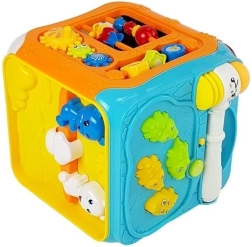 Interactive Educational Cube allows diverse and engaging fun for your child. Each side of the cube has a different function, enabling children to move elements, match shapes, and play with music and lights. Sound and light effects stimulate sensory perception and facilitate learning.