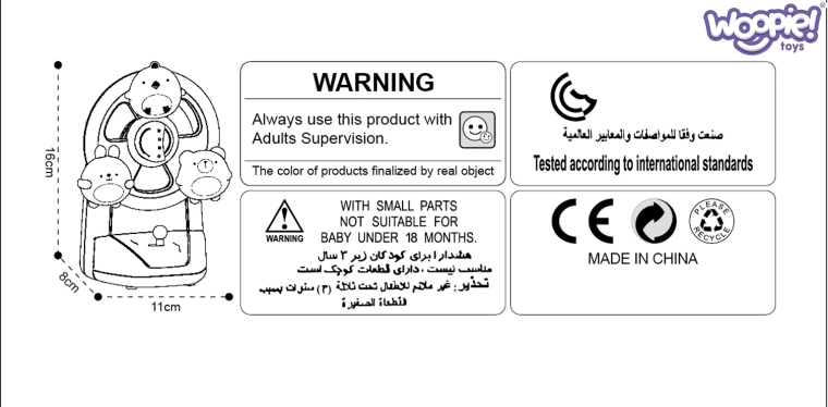 - Musical melodies (music-playing function), rotating carousel with animals, imitation phone dial, stabilizing suction cup