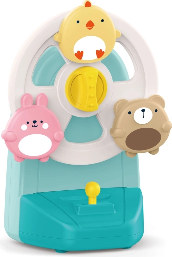 Discover an interactive musical carousel with animals that entertains kids and soothes them before sleep. Colorful figures of a chick, a bunny, and a bear spin as the melody plays, naturally supporting the development of vision, hearing, and hand–eye coordination. The stable suction cup keeps the toy firmly on a smooth surface, making it safe and always within reach.