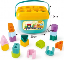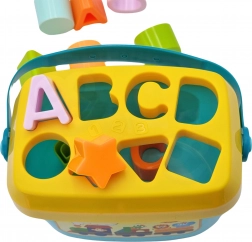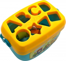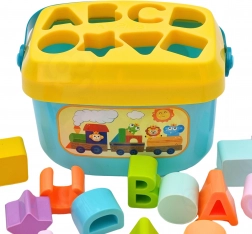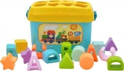 The lid with cutouts for letters, numbers, and shapes motivates children to match the correct pieces. It develops symbol recognition, color knowledge, and logical thinking.