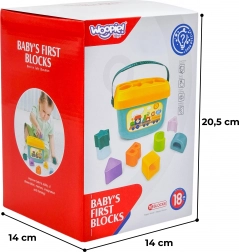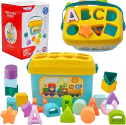 The smart WOOPIE sorter combines fun and learning in one. The durable plastic box with a lid featuring cutouts for letters, numbers, and shapes encourages children to match and insert the correct pieces. The play supports hand–eye coordination, patience, and spatial imagination, while colorful elements help with learning colors.