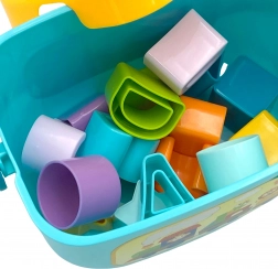Thanks to its compact design and handle, the box is easy to carry; the lid serves as a sorter and the interior as a storage box. After play, simply store everything inside—no more lost pieces. Ideal for children from 18 months, at home or on the go.