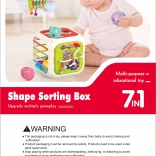 mini xylophone (removable panel), gears, bead maze, elastic ribbons/strings, shape sorter