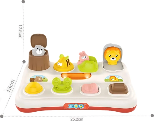 Children's Educational Toy ZOO Animals Pop Up from the Woopie brand combines learning and fun for little explorers. By activating a switch, knob, or buttons, an animal pops up! This interactive toy is well-made, highly durable, and not easy to damage. It’s a great gift for various occasions that not only brings joy but also helps develop motor skills and understanding of cause and effect.