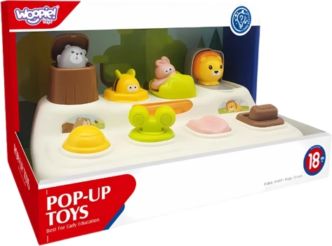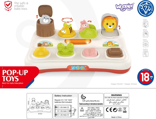Discover the interactive children's educational toy ZOO Animals Pop Up by Woopie, combining learning and fun. A highly durable toy, ideal for developing motor and sensory skills.