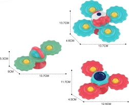 A set of 3 interactive spinner toys from the WOOPIE brand, colorful and a great choice for your child. Each toy has a different number of arms: 2, 3, or 4 arms. You can attach them to smooth surfaces, expanding play possibilities. Made from safe materials, also ideal as a teether for the youngest. Various bumps and indentations effectively stimulate the senses and your child's motor skills.