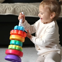 Building towers from rings of different sizes and colors develops logical thinking and creativity.