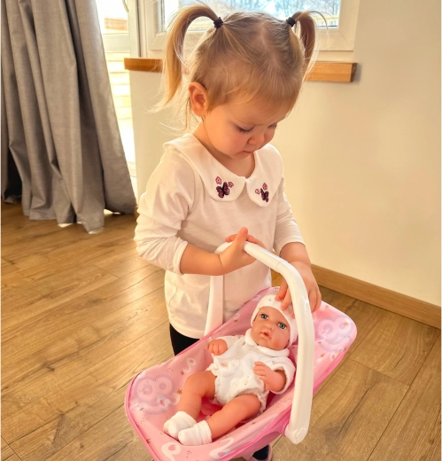 WOOPIE Royal baby doll is the ideal companion for your games! The doll is dressed in a beautiful outfit, including socks and a cap. The set includes a magical pink carrier. Children develop creativity and learn empathy through role-playing.