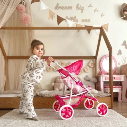 The elegant WOOPIE Royal doll stroller with a floral print is a great choice for kids who love to imitate adults. The light yet sturdy frame ensures comfortable and safe use, while the foldable canopy shields the doll “from the sun.” Thanks to the soft handle and quiet, grippy foam wheels, the stroller is easy to maneuver on carpet and smooth floors.