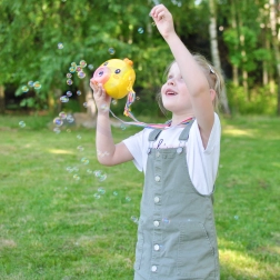 The WOOPIE bubble train chick is an ideal toy for children aged 3 and up. Easy control with a On/Off button, rich bubble output, and a lightweight build make it the perfect companion for the garden, playground, and kids’ parties.