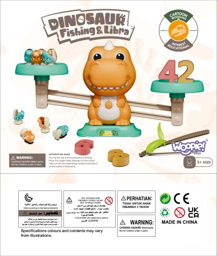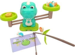 The fun educational set from WOOPIE combines a dinosaur balance scale with a magnetic fishing/dino game. Kids practice counting 1–10, basic equations, and fine motor skills using number weights, task cards, and magnetic rods. An ideal activity for preschoolers aged 3+.