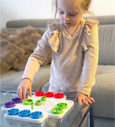 WOOPIE Logic Game is designed for family evenings and social gatherings. It is intended for children aged 3 and up and is suitable for 1 to 4 players. The game promotes the development of problem-solving skills and strategic thinking in children and teaches patience and healthy competition.