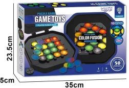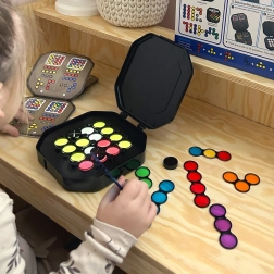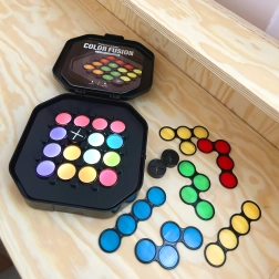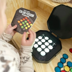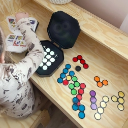 Discover a cleverly designed game that combines logical challenges with colorful creativity. Children arrange transparent discs according to pattern cards and, thanks to the backlit board, watch how colors layer and blend. The game naturally develops spatial imagination, hand–eye coordination, and teaches planning steps ahead.