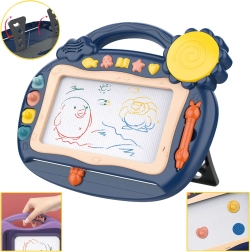 The WOOPIE magnetic drawing board brings endless creative fun without the mess. It supports writing, drawing, and the development of fine motor skills. Use the sliding eraser to easily clear the picture and start again. Includes a stylus, 4 stamps, and multifunction sound buttons with effects, songs, electronic sounds, the English alphabet, and a drum. Thanks to the practical handle and fold-out legs, the board is ideal for travel and tabletop use.