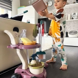 This purple cleaning cart invites children to imaginative play and develops their creativity and coordination.
