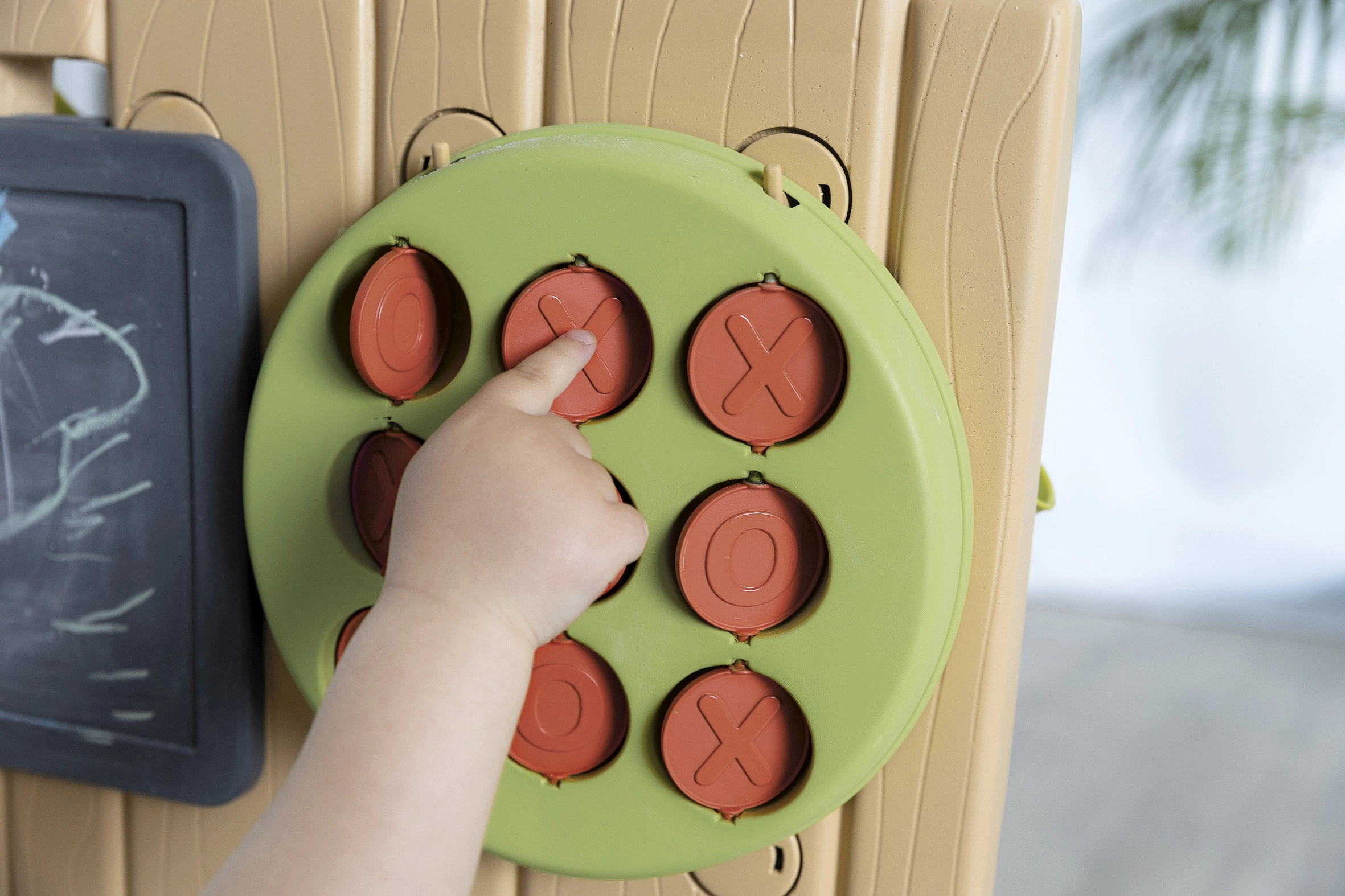 Smoby Activity Wall is an excellent toy that gives children hours of great fun while helping develop their motor skills, creativity, and logical thinking. The product is made from 84% recycled plastic, making it an eco-friendly choice. The wall offers 6 diverse activities and up to 29 accessories, ensuring endless entertainment in the garden, on the terrace, or in the kids’ room.