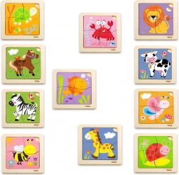 Each puzzle features colorful animal illustrations that encourage learning and exploration.