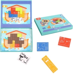 A smart and fun game for little minds: the Noah’s Ark–themed magnetic puzzle brings children aged 3+ 30 logic challenges with 10 wooden animal pieces. The task is to arrange all the pieces so they fill the entire board. The game develops fine motor skills, logical thinking, and concentration and is made from safe, non-toxic materials.